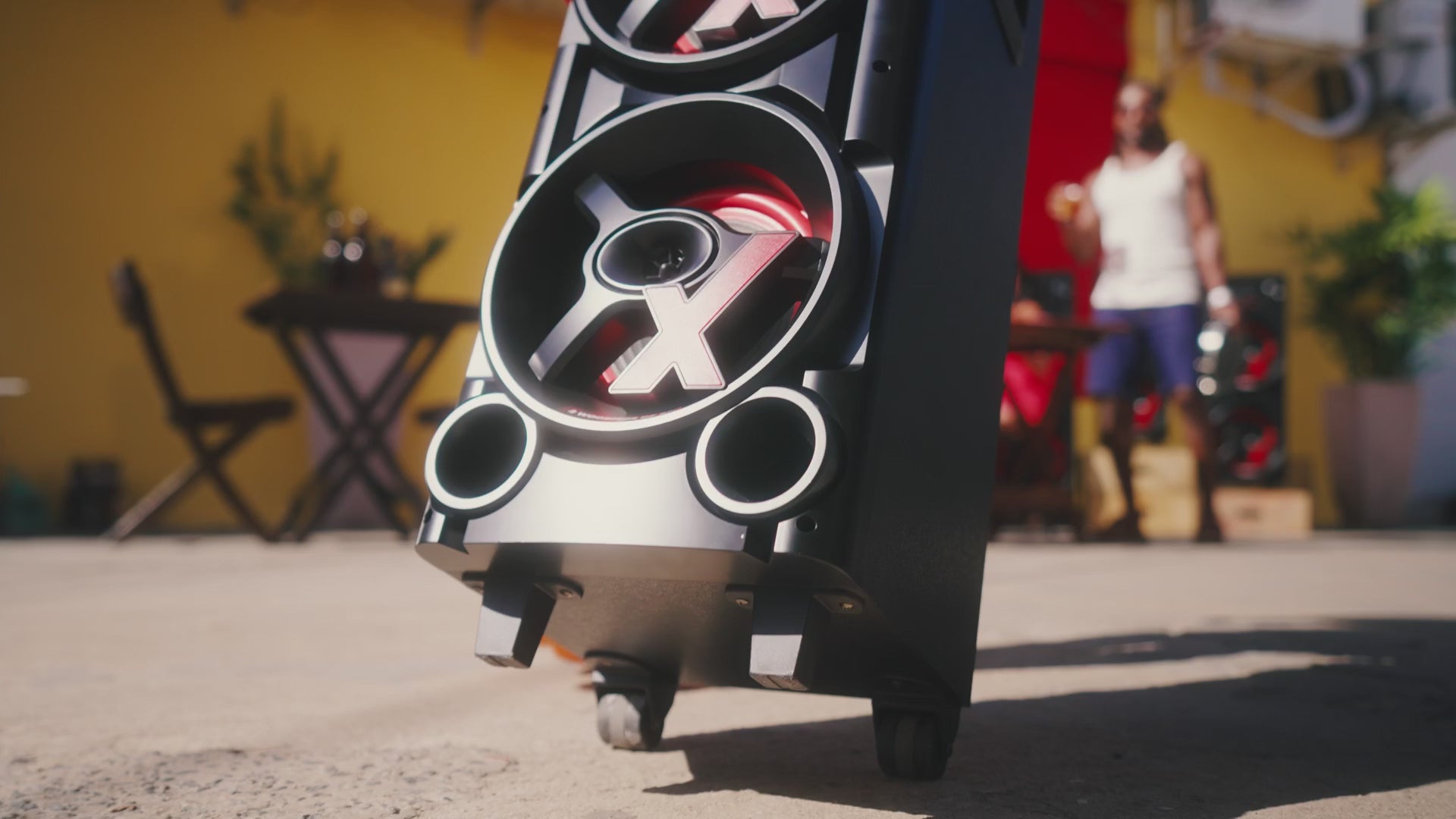 Seu design moderno e robusto, com alça lateral para transporte e amplificador digital , alia potência, estilo e praticidade , sendo ideal para quem busca som de qualidade em qualquer ambiente.